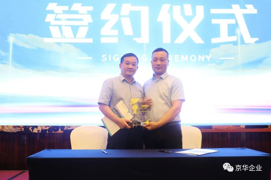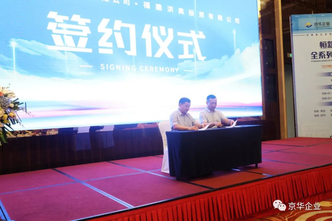 在現(xiàn)場(chǎng)嘉賓們的共同見證下,京華企業(yè)和榮德勝在現(xiàn)場(chǎng)舉行了“恒新“品牌系列彩涂產(chǎn)品的授權(quán)經(jīng)銷商簽約典禮。
