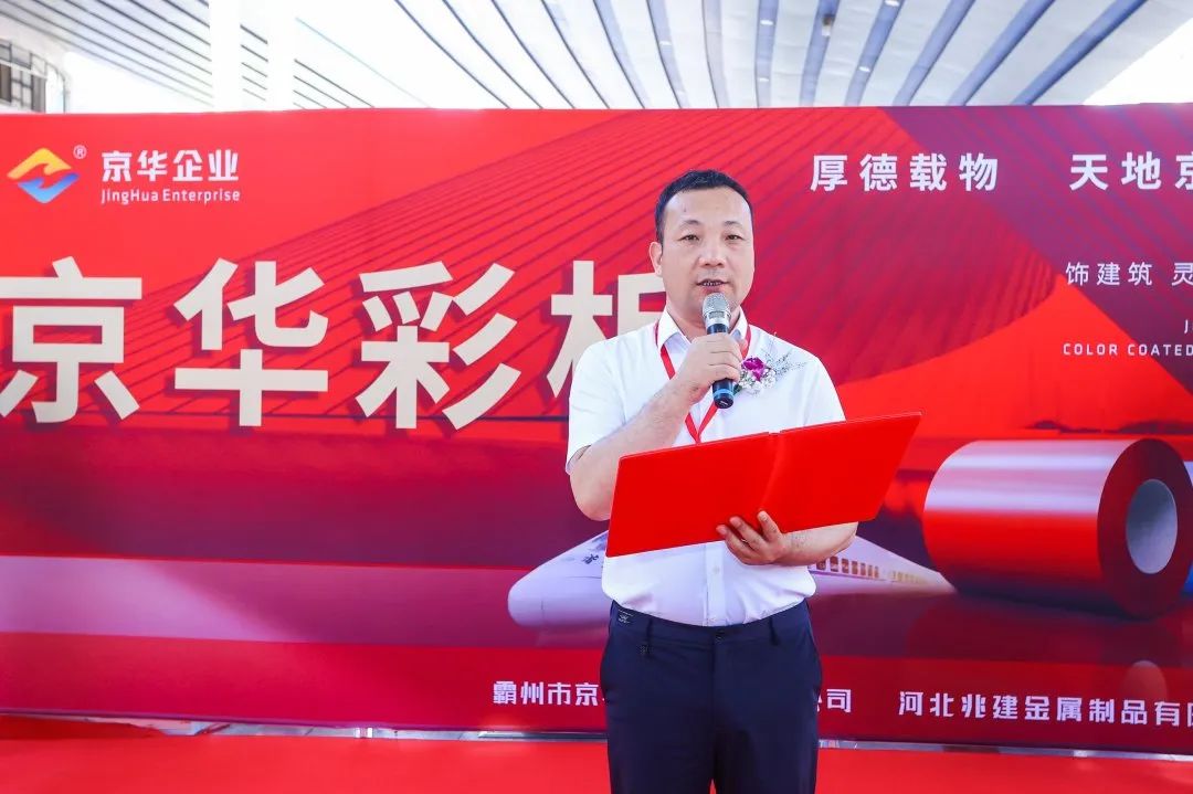 京華金屬制品有限公司總經(jīng)理陳鐵柱、副總經(jīng)理王飛、副總經(jīng)理邢英壯、生產(chǎn)副總王光增、彩板銷售經(jīng)理肖冰等主要領(lǐng)導(dǎo)以及華鐵傳媒集團有限公司高級副總裁程碩、特邀經(jīng)銷商劉昊、郭澤溪、周世斌、梁馨予、齊振、周立揚、郭相、趙士宇等雙方領(lǐng)導(dǎo)、嘉賓共同出席。