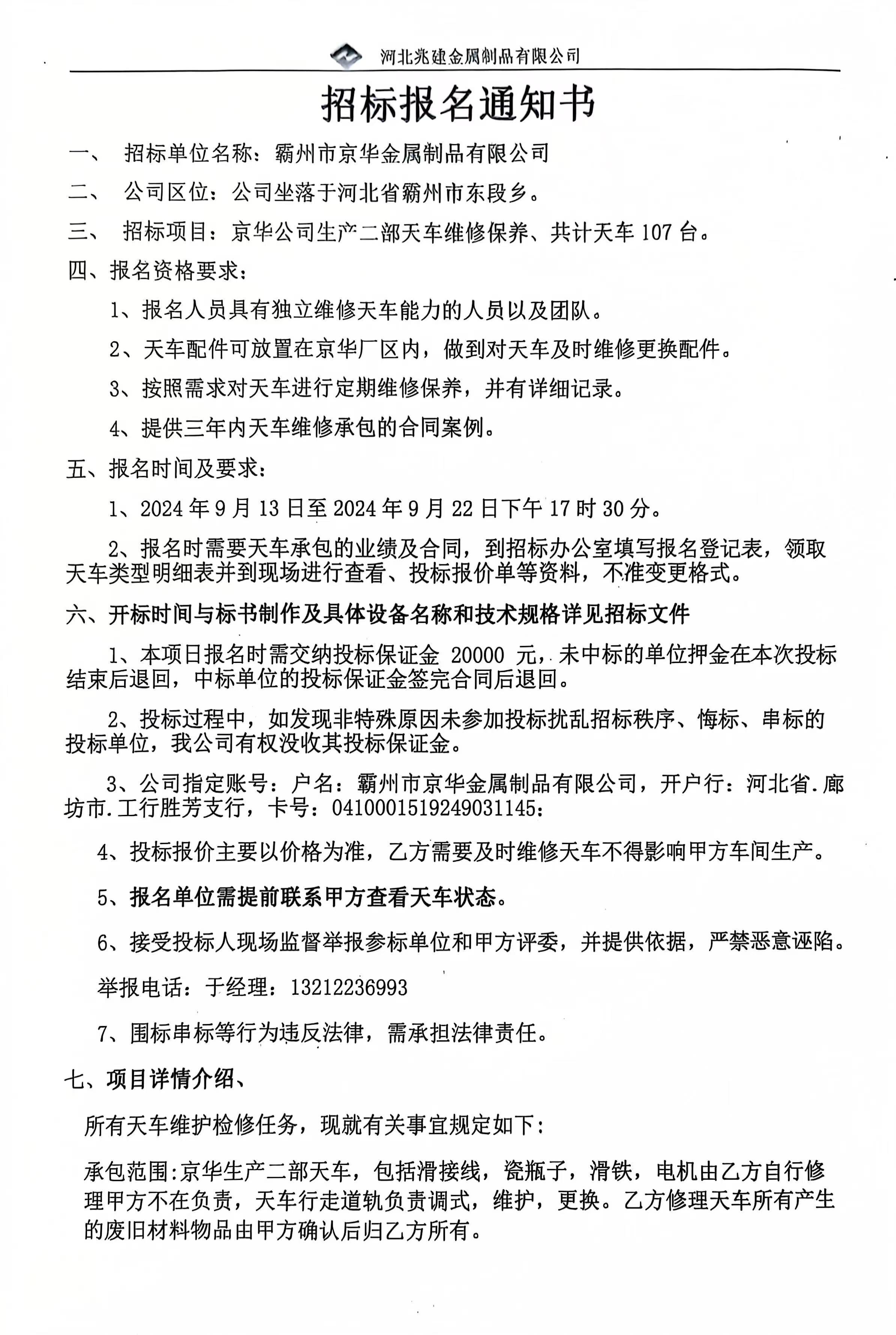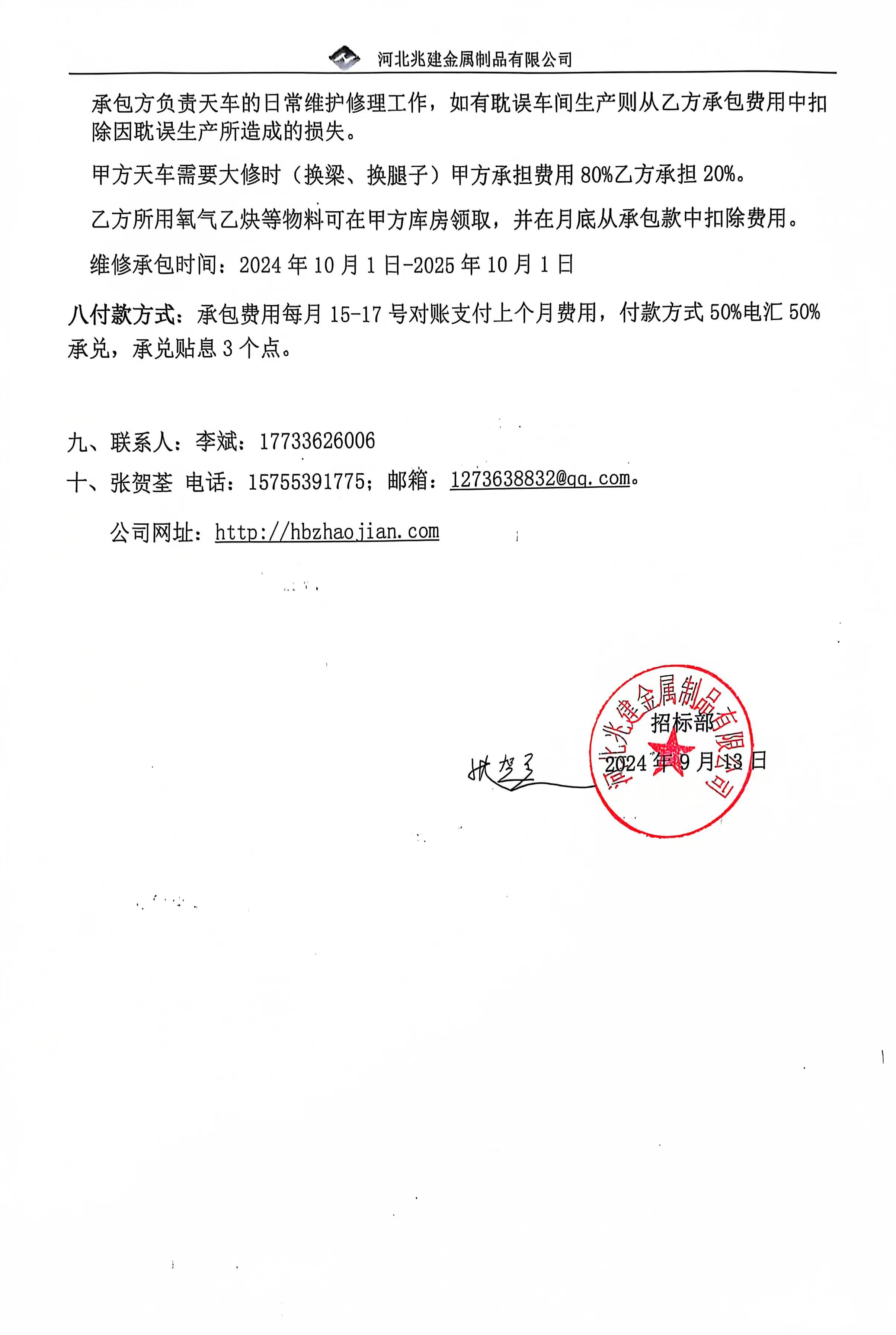 - 招標(biāo)業(yè)主: 河北兆建金屬制品有限公司