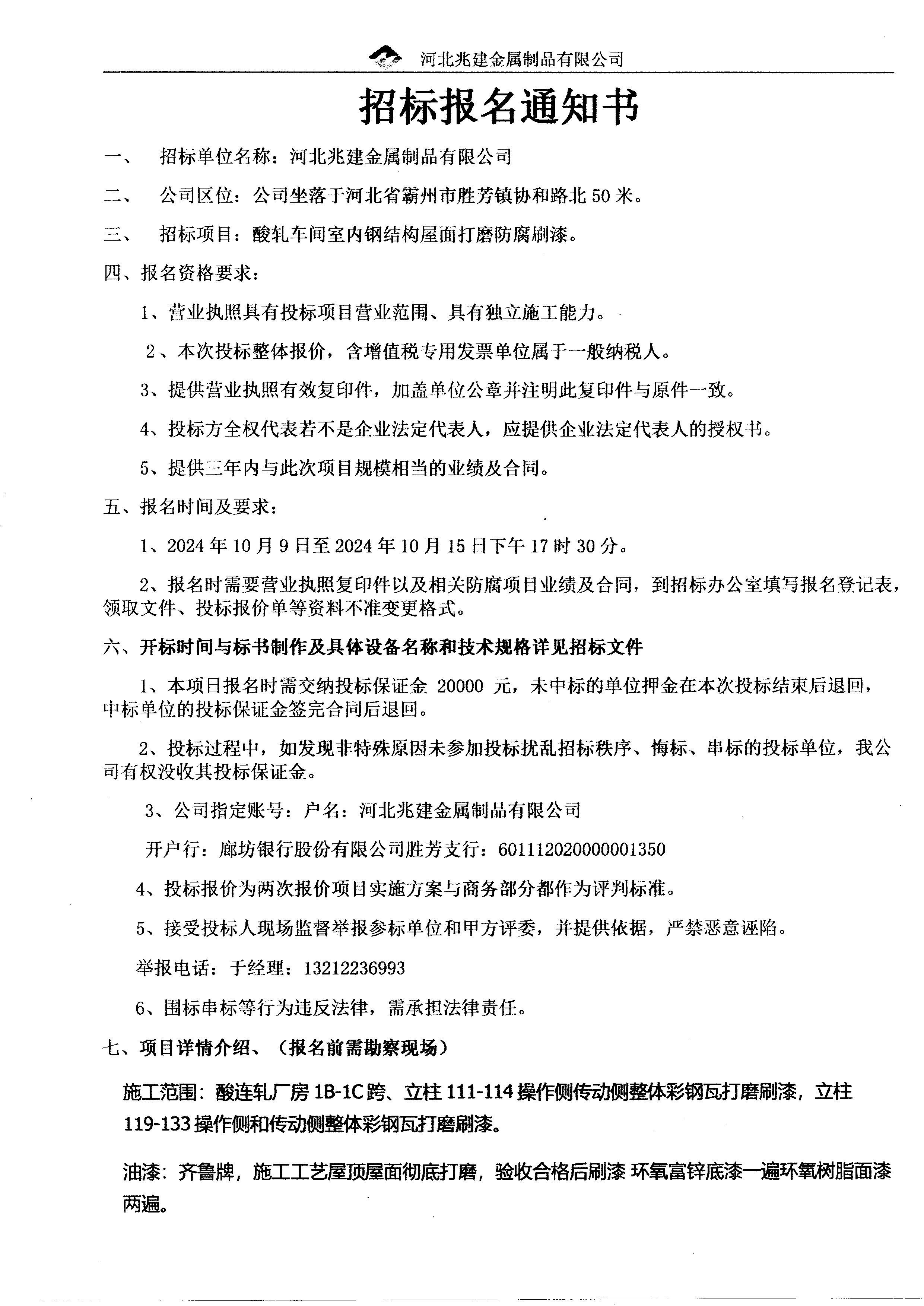 • 招標(biāo)業(yè)主: 河北兆建金屬制品有限公司